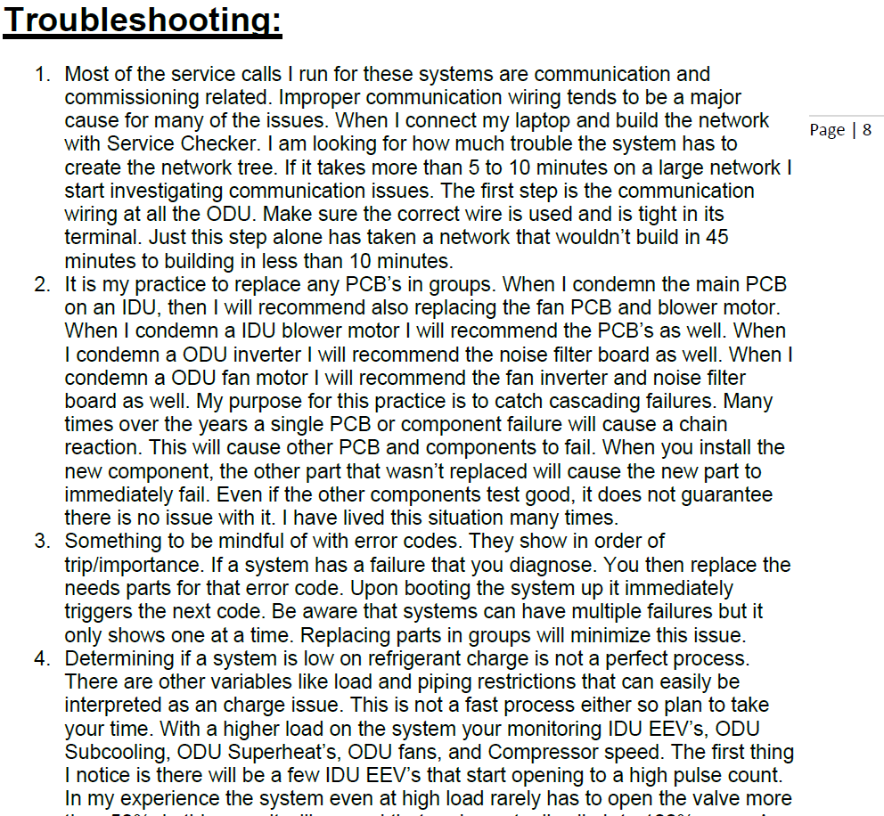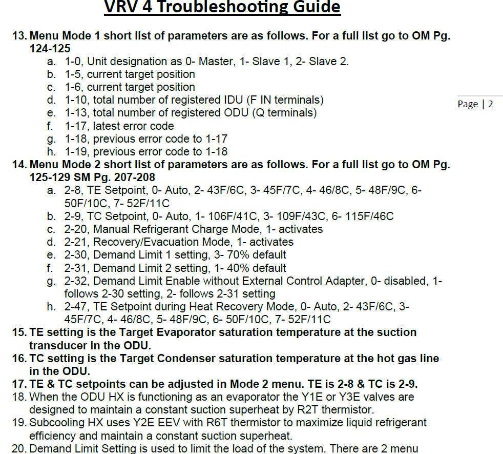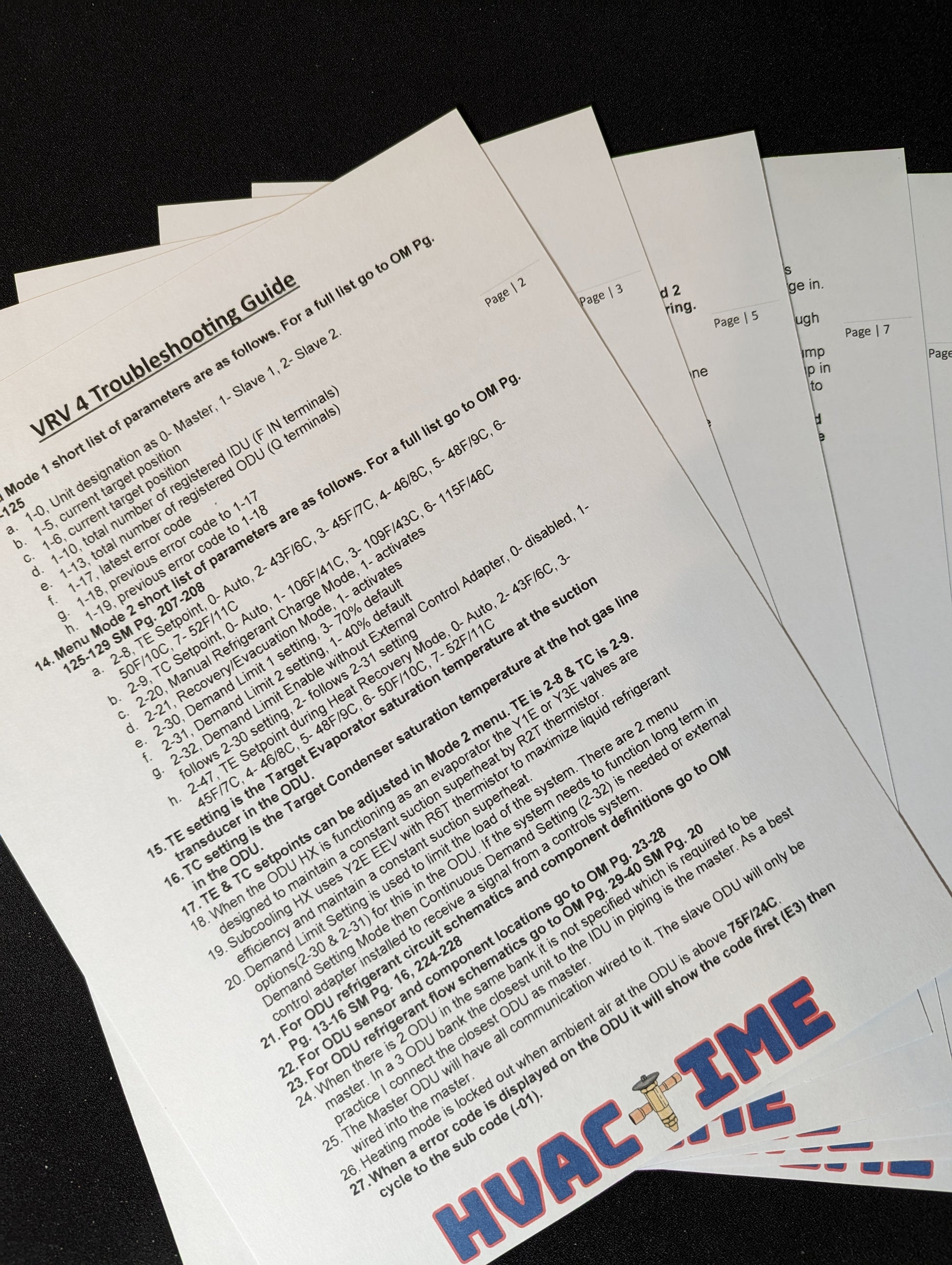 This is a VRV troubleshooting guide for VRF technicians. This form has the technical data for the VRV 4 system you need to make an accurate and confident assessment. As a HVAC technician myself I developed this troubleshooting guide to help techs on their journey.